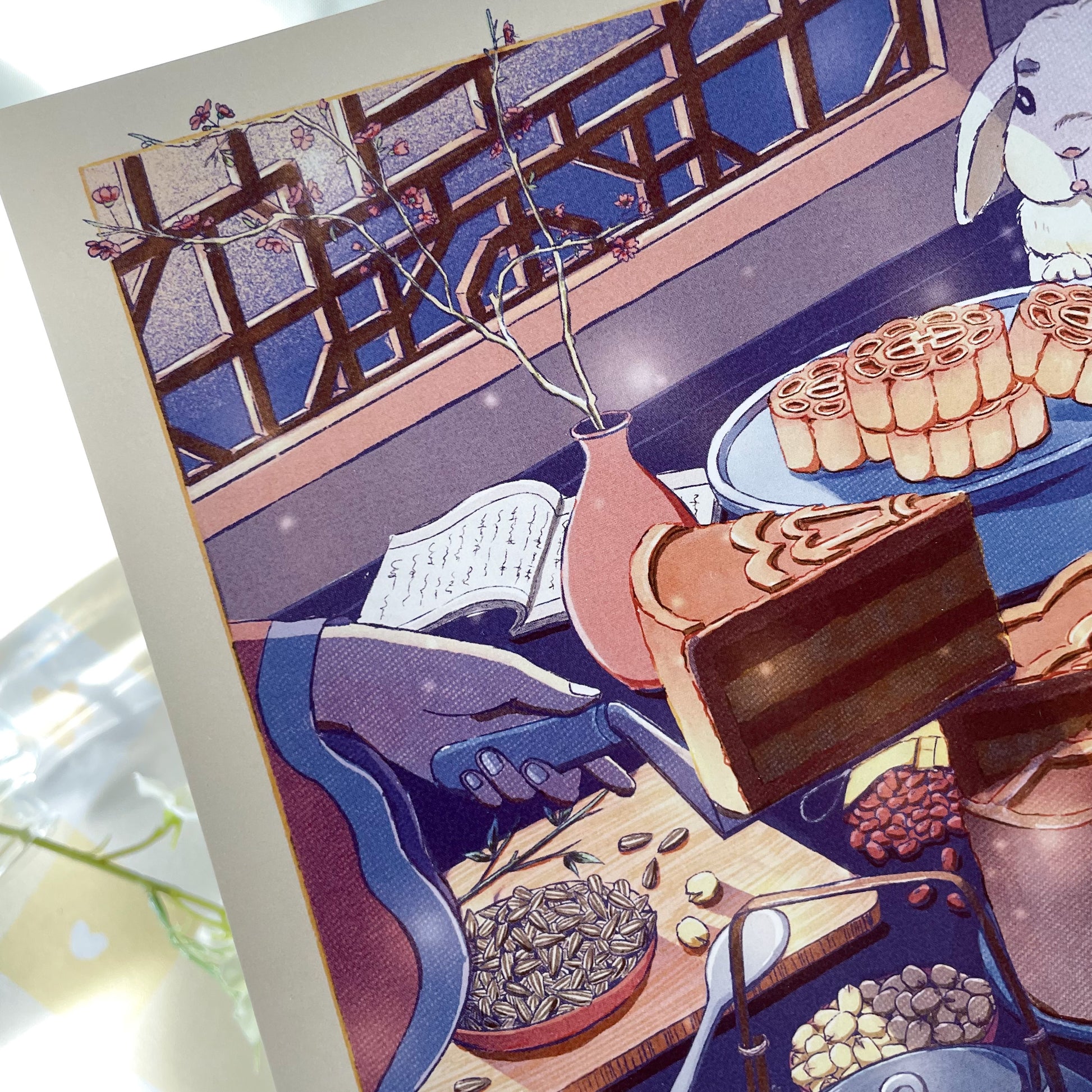 Chang'e and the Moon Rabbit decides to celebrate the festivities with a bountiful feast filled with mooncakes.